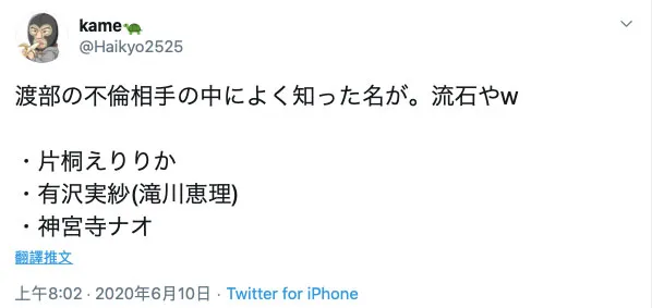 经过确认,这位女艺人的真实身份是滝川恵理。